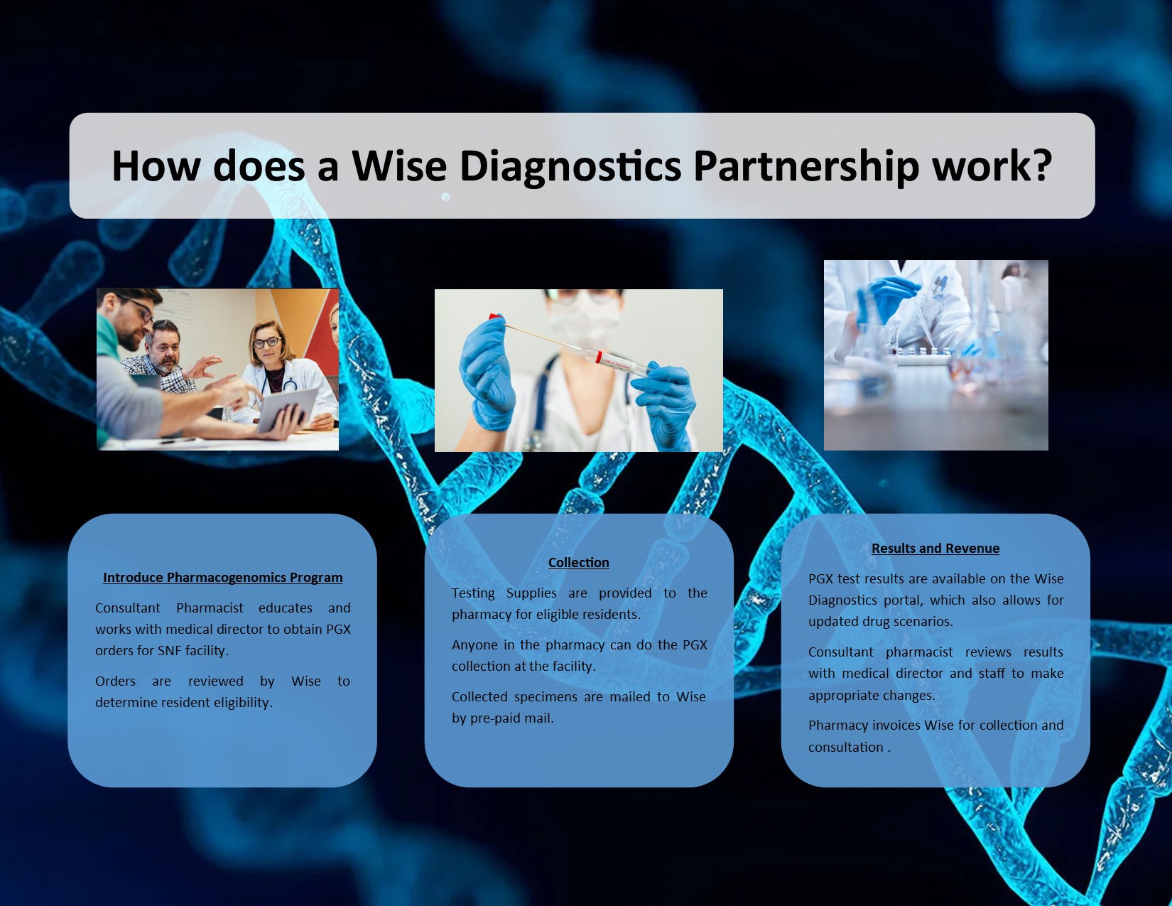 Impact LTC has partnered with Wise Diagnostics to create the best pharmacogenomics partnership for long-term care pharmacies in the industry.